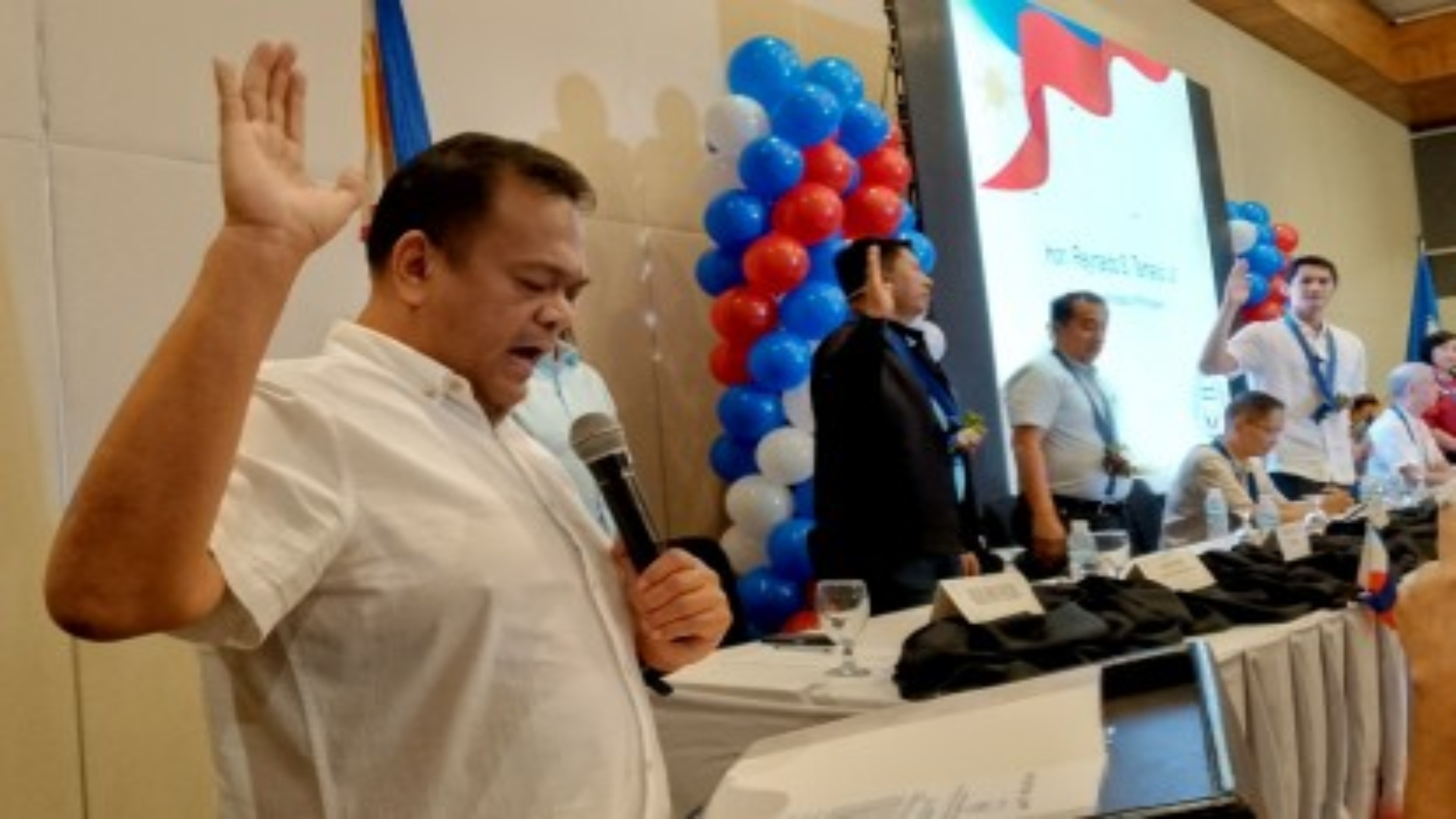 South Cotabato Governor Reynaldo Tamayo Jr., president of PFP, administered the oath in the presence of Fifth District Board Member Anthony Dennis Occeño, provincial chairman of PFP in Negros Occidental, and other top officials of the province.